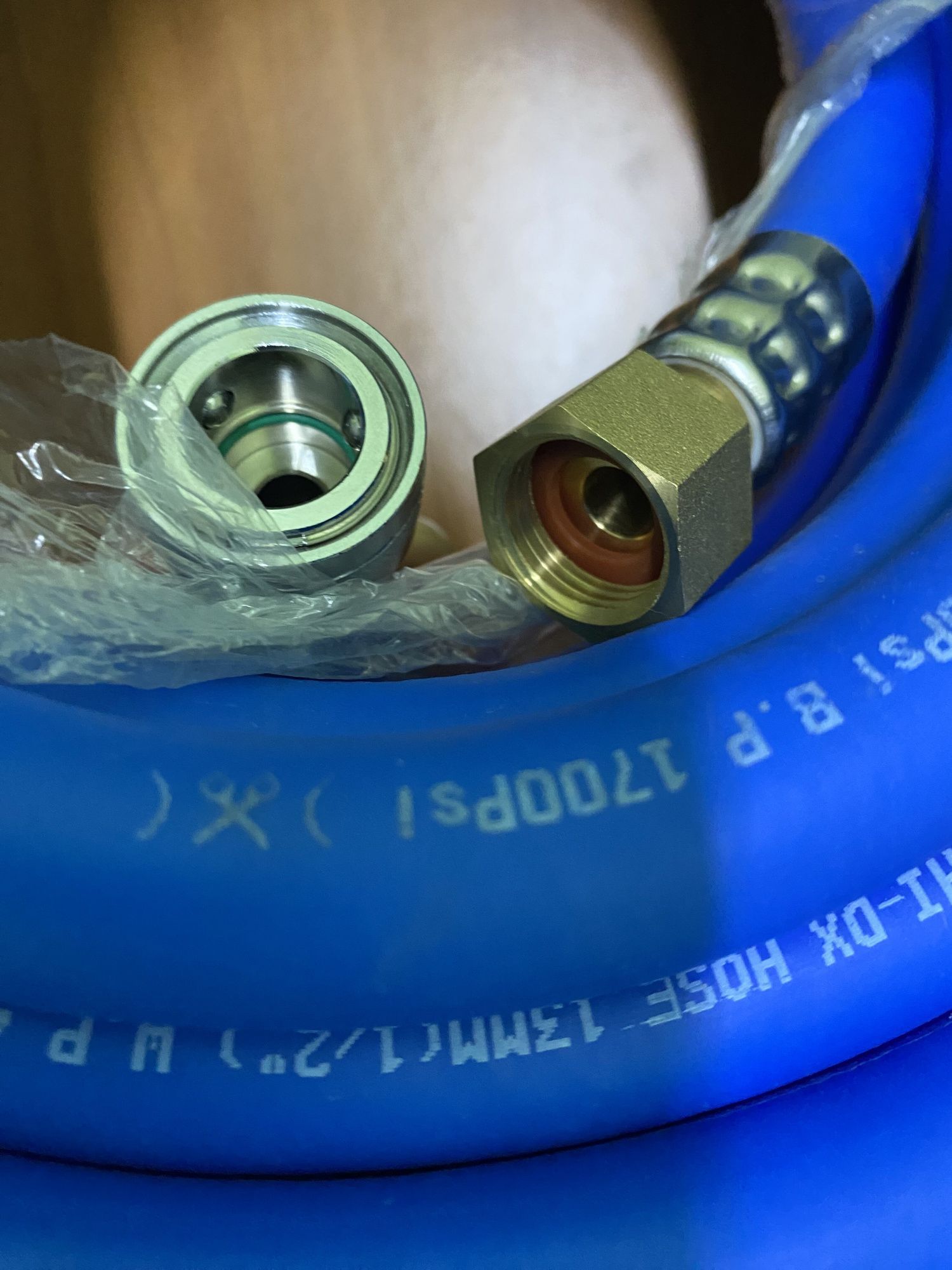 Соединения шланга: 1. быстроразъемное соединение "мама" (байонет) под ниппель типа Nito 1/2"; 2. гайка 3/4" внутренняя резьба.