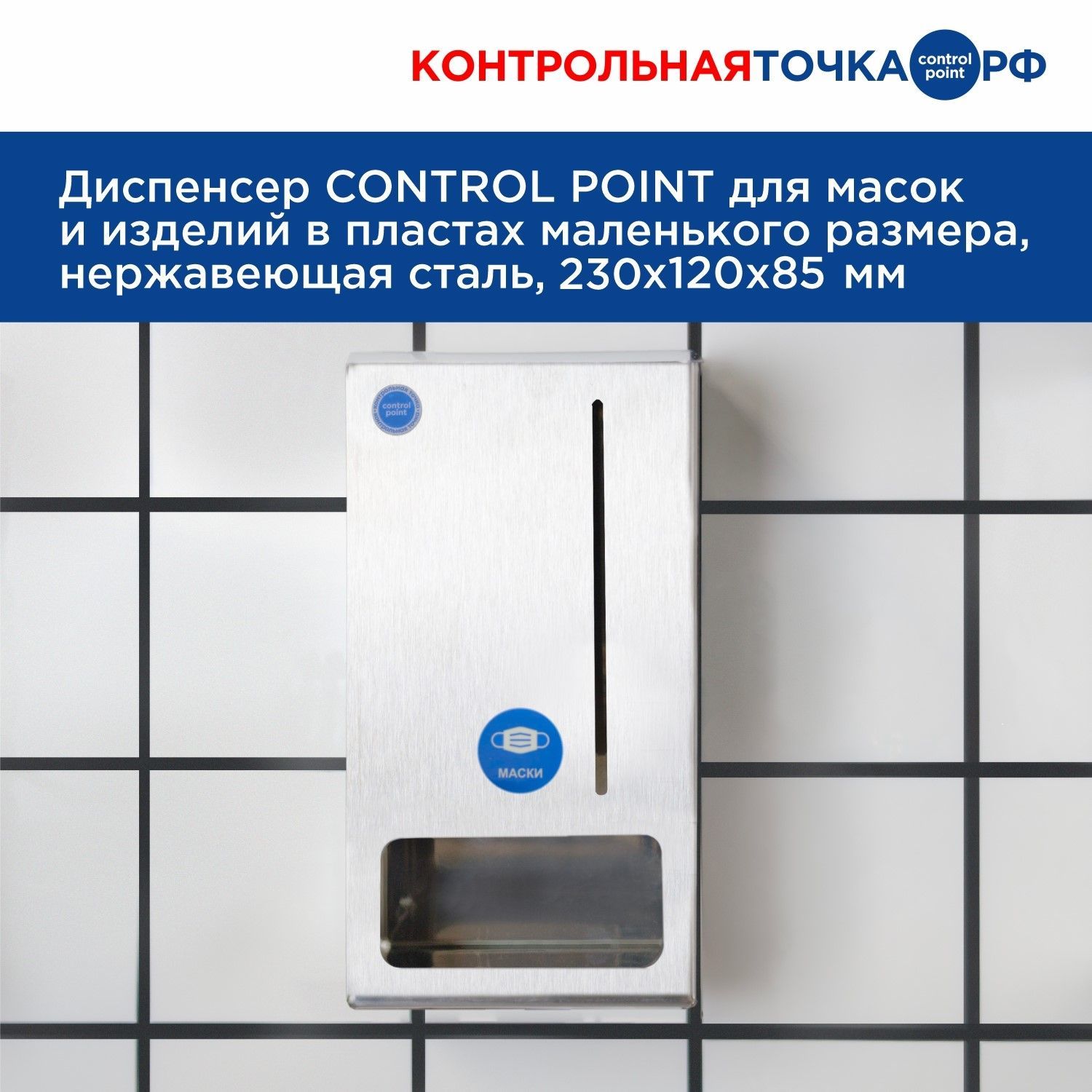 Диспенсер CONTROL POINT для масок и изделий в пластах малого размера, нержавеющая сталь, 225×120×84 мм (арт. 271610)
