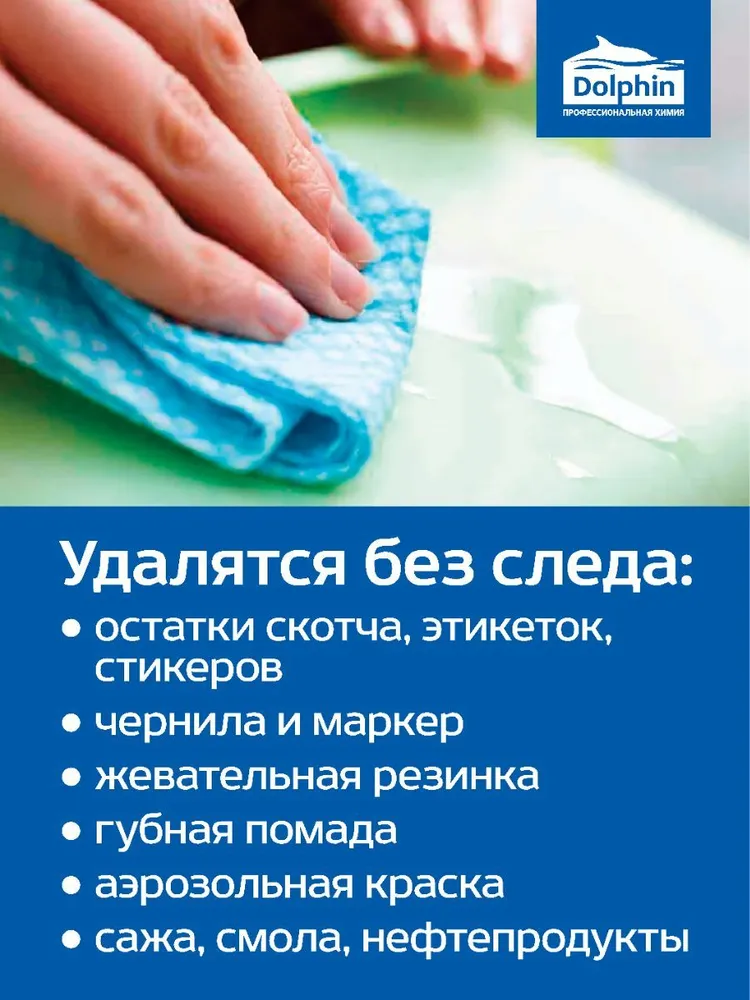 Dolphin Power Clean Plus D007 — это специализированное профессиональное средство для удаления сложных, стойких точечных загрязнений с твёрдых поверхностей. Благодаря уникальной формуле на основе углеводородов, средство эффективно справляется с загрязнениями, которые не поддаются стандартным методам очистки: чернила, аэрозольные краски, следы скотча, клей, жевательная резинка и другие трудноудаляемые вещества.