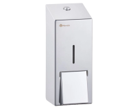 Корпус выполнен из нержавеющей стали AISI 304 с полированной поверхностью, толщиной 1 мм. Конструкция антивандальная: прочный барабанный замок заподлицо с поверхностью, сварные соединения боковых стенок зашлифованы. Предусмотрено контрольное окно для отслеживания уровня средства. Установка настенная.