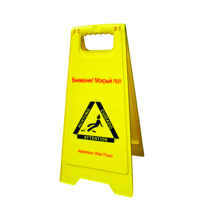 Знак «Мокрый пол». Выполнен из пластика, раскладной.