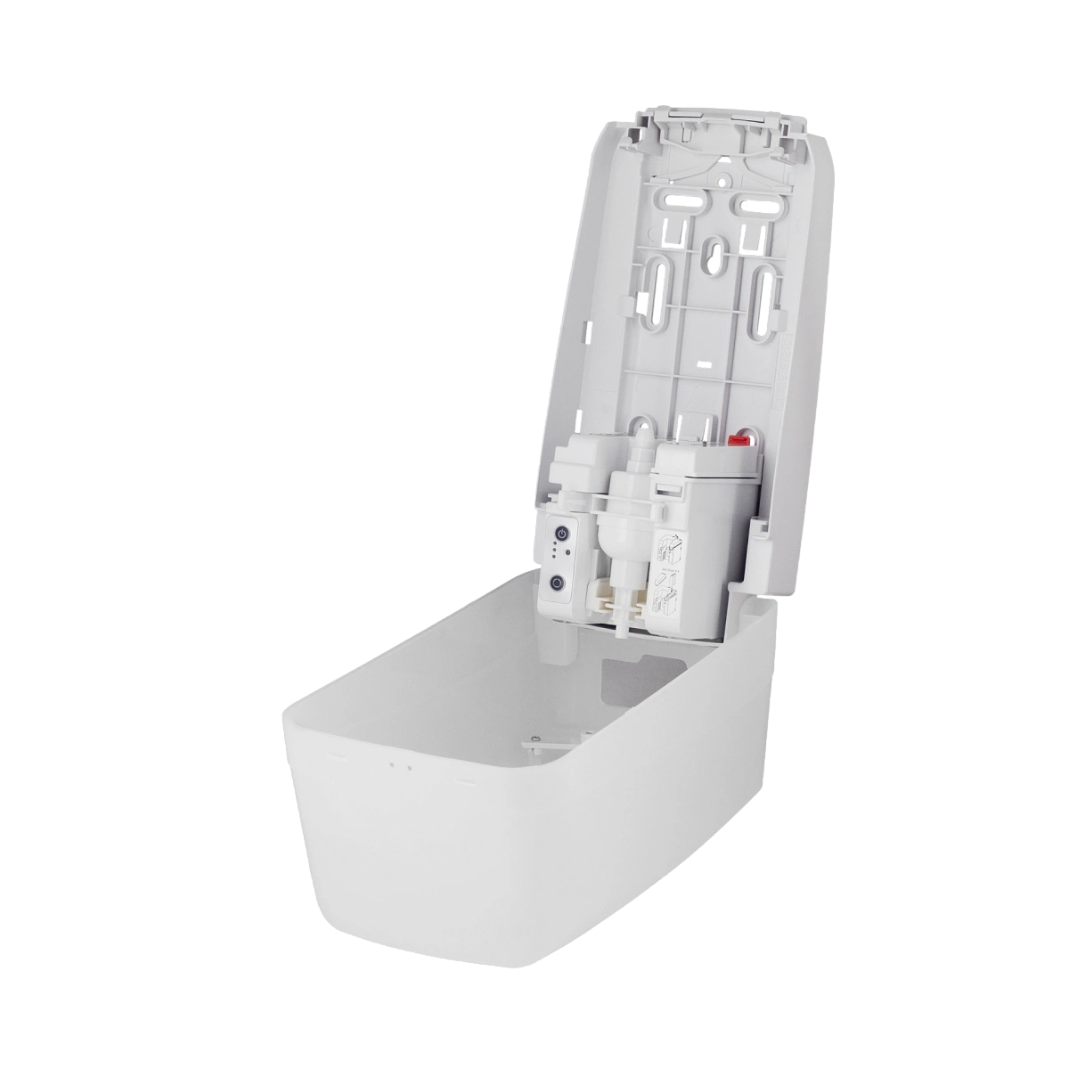 Корпус изготовлен из прочного и лёгкого ABS-пластика, устойчивого к механическим повреждениям и воздействию влаги. Полупрозрачная вставка на передней панели позволяет легко контролировать уровень мыла, исключая неожиданные перебои в обслуживании. Компактные размеры и лаконичный дизайн позволяют гармонично вписать дозатор в любой интерьер — от общественных санузлов до частных ванных комнат.