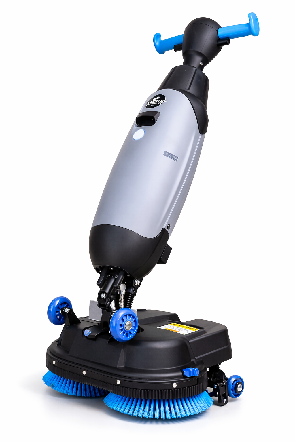 Машина оборудована двумя дисковыми щётками, которые обеспечивают равномерное распределение моющего раствора и эффективное удаление загрязнений различной сложности. Усиленное давление щёток способствует качественной очистке даже въевшихся загрязнений, сохраняя при этом целостность напольного покрытия.