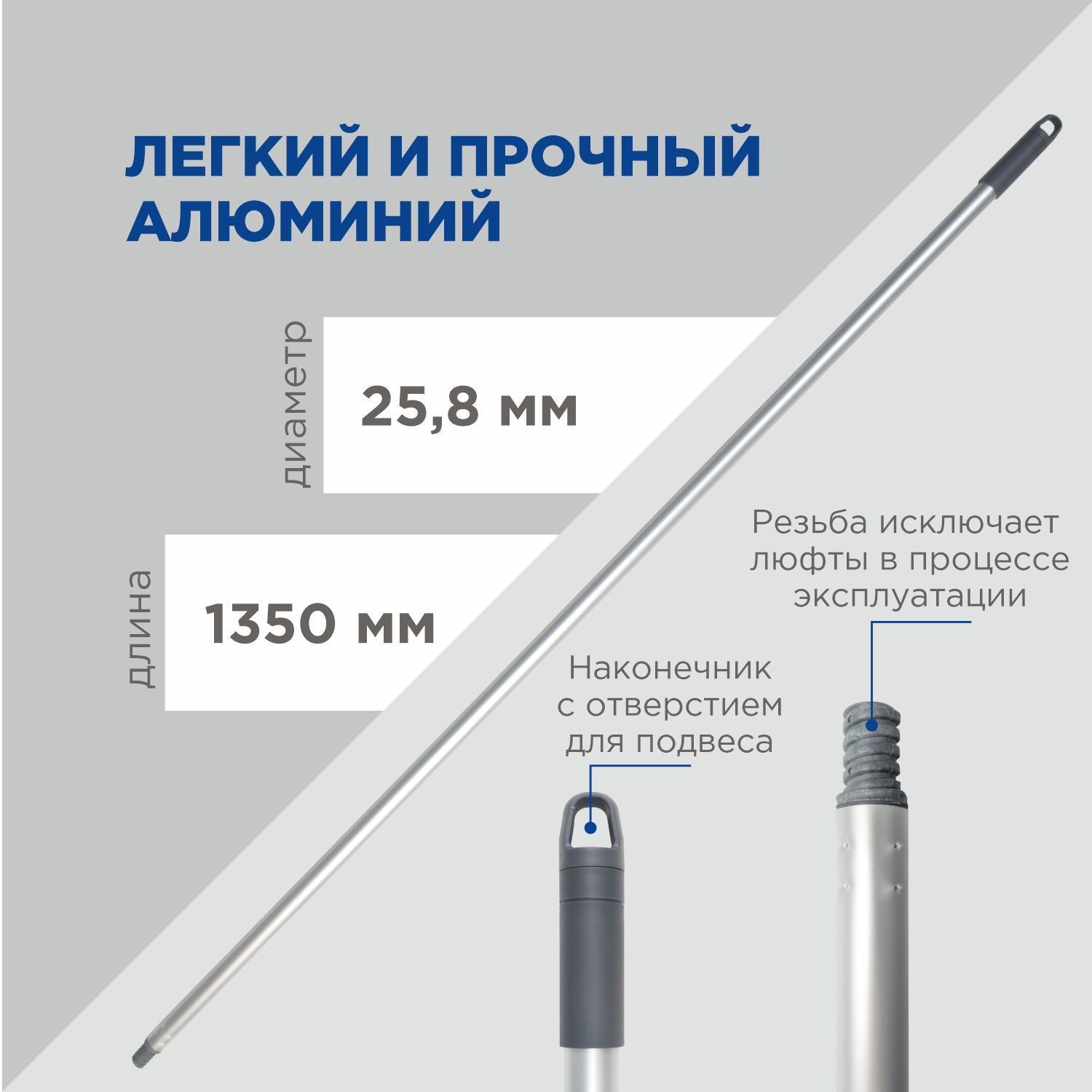 Алюминиевая рукоятка CONTROL POINT Эконом — это лёгкое и надёжное решение, предназначенное для профессионального клининга и хозяйственных нужд. Она обеспечивает комфортную работу при уборке больших площадей и подходит для крепления широкого спектра щёток, швабр, сгонов и другого инвентаря.