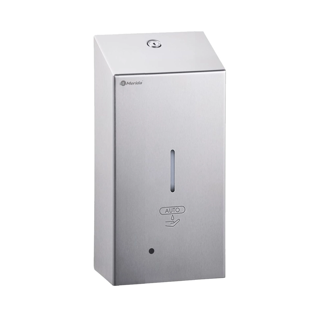 Сенсорный наливной дозатор пены металлический MERIDA STELLA R (Anti Finger), модель DSA116.R — современное устройство для гигиеничной подачи мыла-пены, разработанное для общественных и коммерческих помещений с интенсивным использованием. Корпус выполнен из нержавеющей стали AISI 304 с покрытием Anti Finger, предотвращающим появление отпечатков пальцев и загрязнений, что обеспечивает безупречный внешний вид даже при высокой нагрузке.Дозатор оснащён сенсорным механизмом, который исключает прямой контакт рук с устройством, повышая уровень гигиены. Вместимость резервуара составляет 1100 мл, что соответствует примерно 1100 порциям пены. Работает от четырёх батареек типа АА (в комплект не входят) и оснащён смотровым окошком для контроля уровня средства.