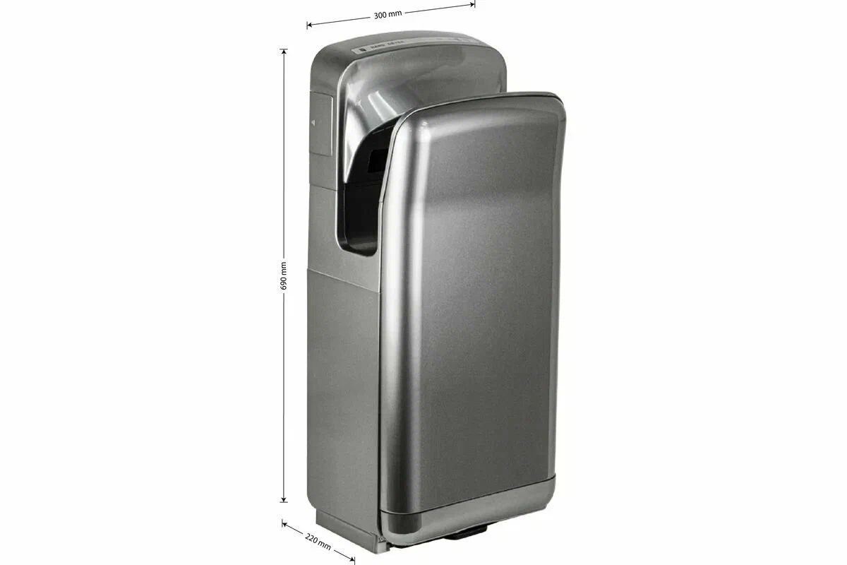Погружная конструкция устройства обеспечивает эффективное удаление влаги благодаря направленным воздушным потокам, которые буквально срезают воду с поверхности рук. Сушилка способна высушивать руки всего за 7–12 секунд, что существенно снижает время ожидания и повышает пропускную способность санитарных помещений.