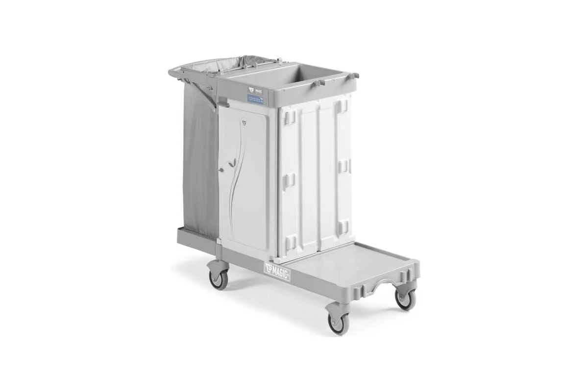Тележка TTS Magic Hotel 830 Safety — профессиональное решение для клининга, предназначенное для работы горничных в гостиницах, отелях, хостелах, санаториях и больницах. Она обеспечивает удобную и безопасную транспортировку чистого и грязного белья, а также уборочного инвентаря, облегчая работу персонала и экономя физические силы.