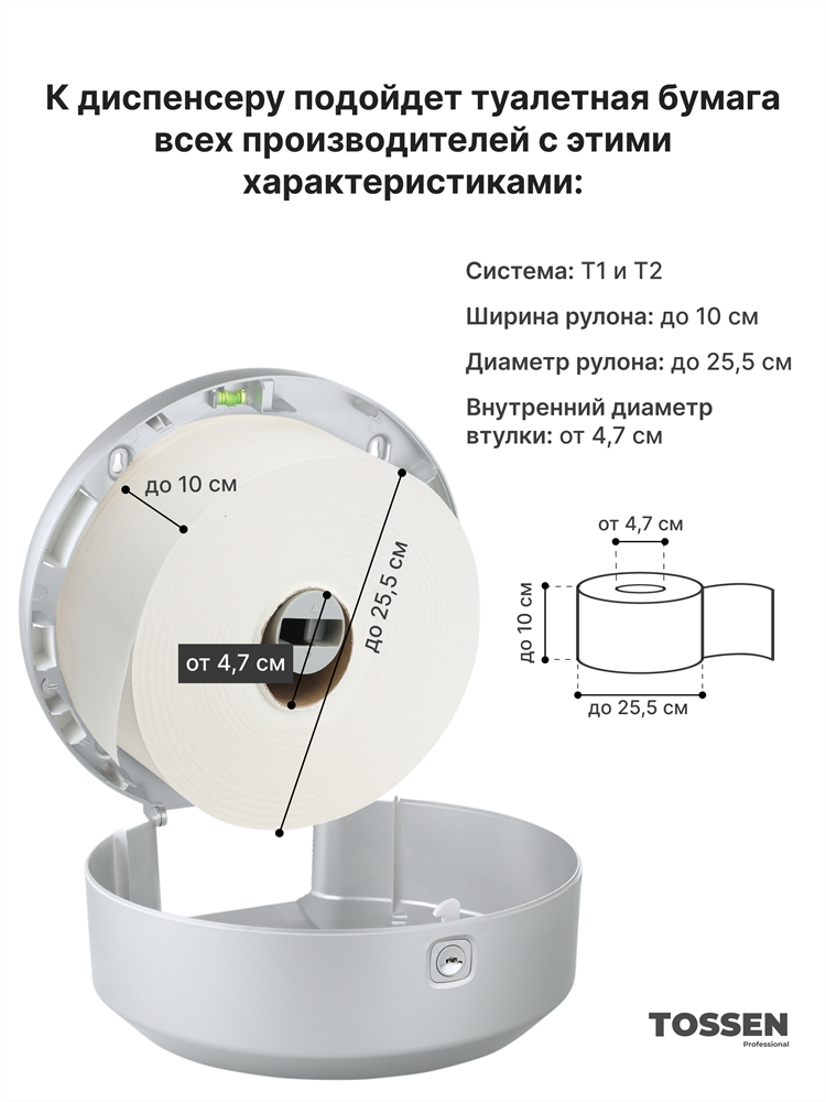 Подходит для больших рулонов туалетной бумаги