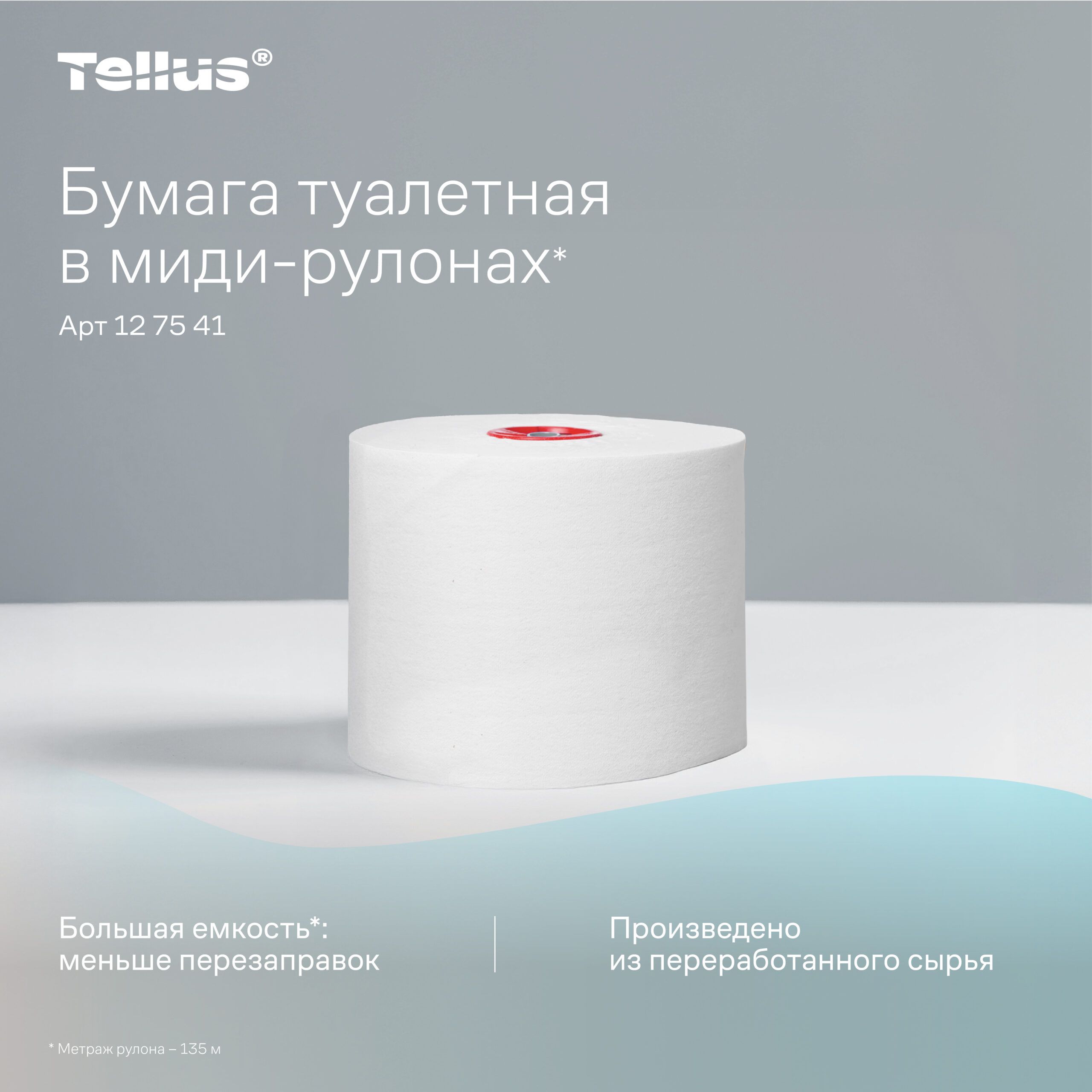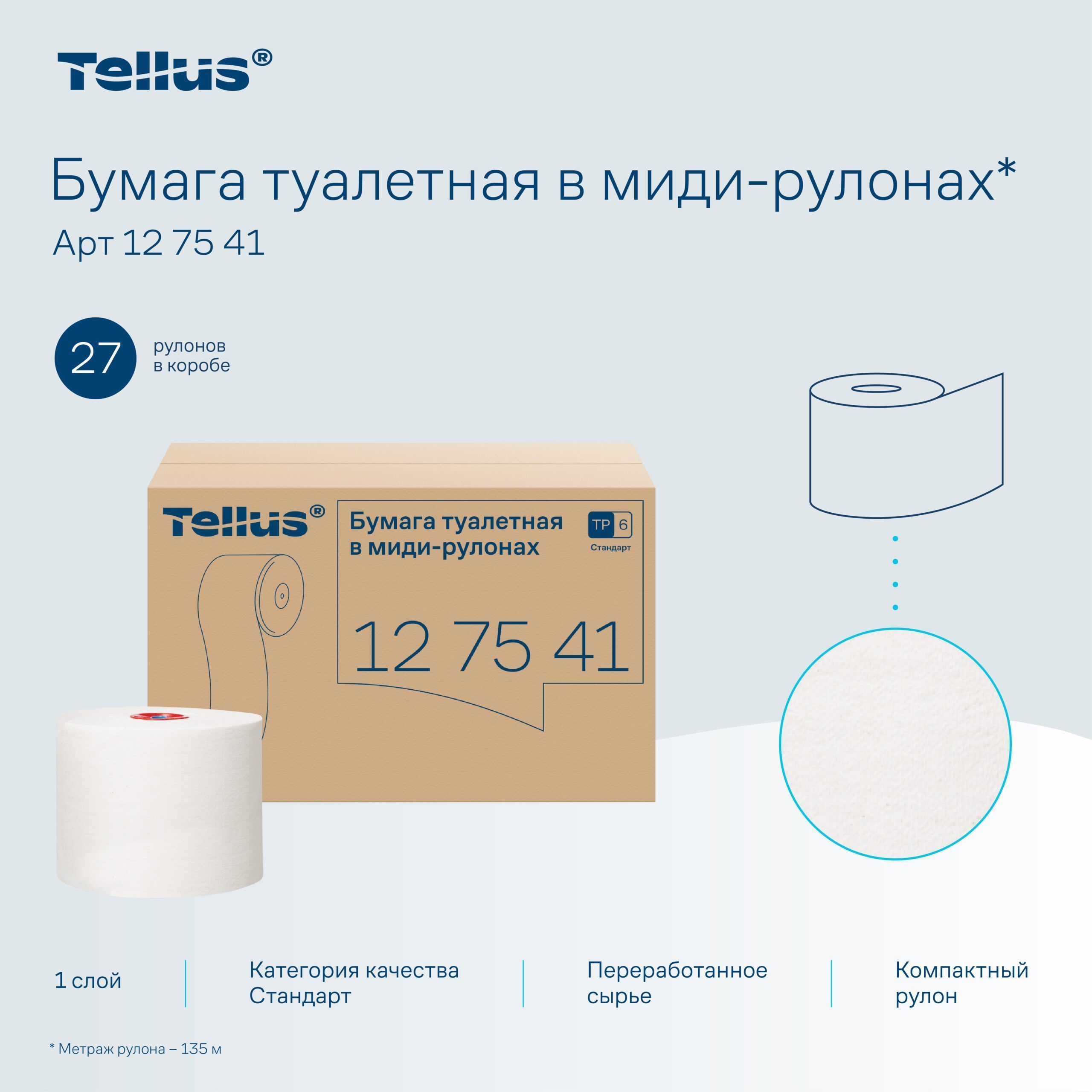Туалетная бумага в миди рулонах Tellus (Торк) Стандарт 2 слоя 135 м Т6 127541
