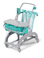 Тележка выполнена из качественного полипропилена, устойчивого к химическим средствам и механическим повреждениям. Передвижение обеспечивают четыре поворотных прорезиненных колеса диаметром 80 мм, а боковой держатель рукоятки облегчает транспортировку и работу с тележкой.
